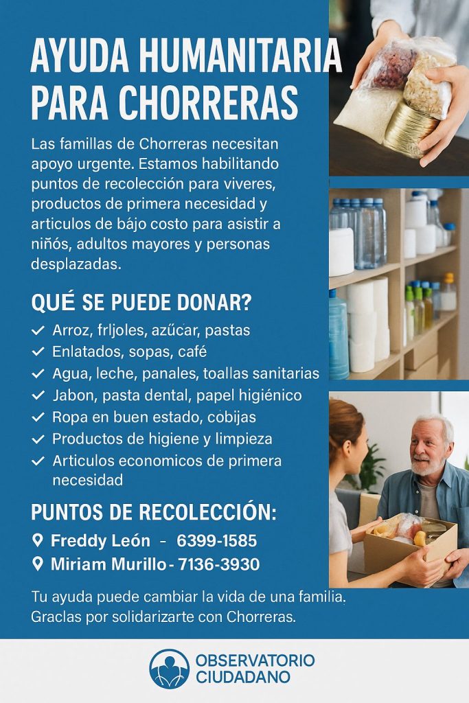 Los interesados en apoyar a las familias expulsadas de Chorreras se pueden comunicar con Freddy León (tel. 63991585) o Mirian Murillo (tel. 71363930) quienes se encargan de acopiar los donativos para luego entregarlos a los expulsados de la zona que es una región fronteriza con Nicaragua.